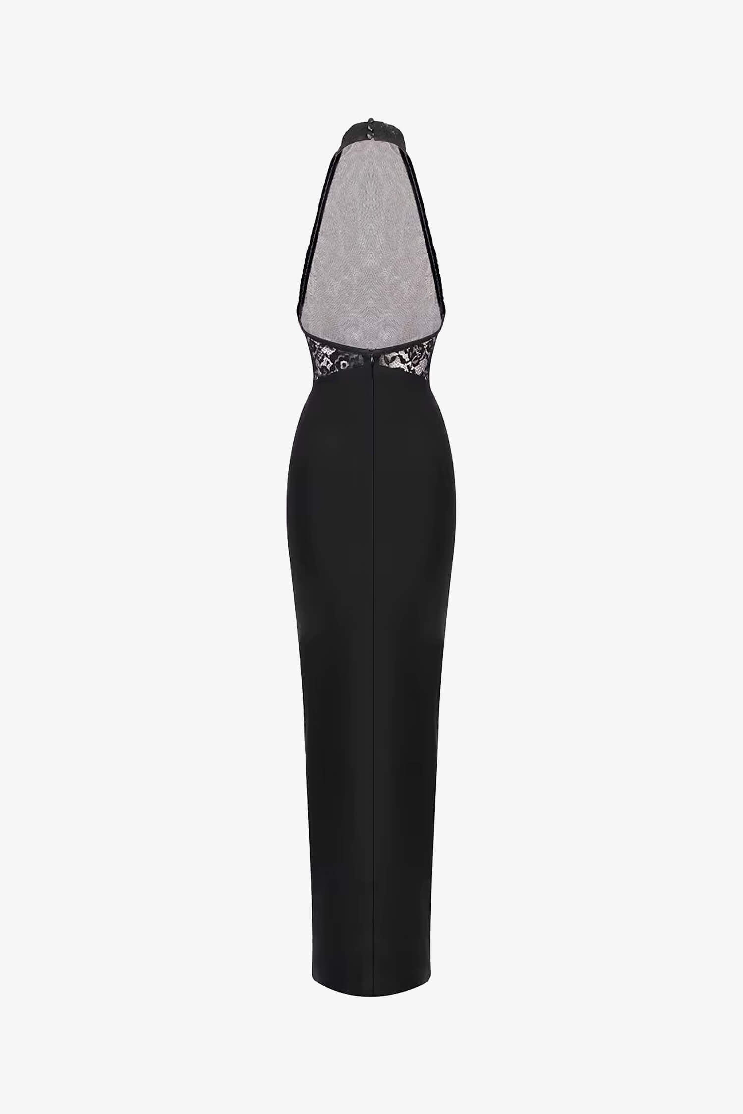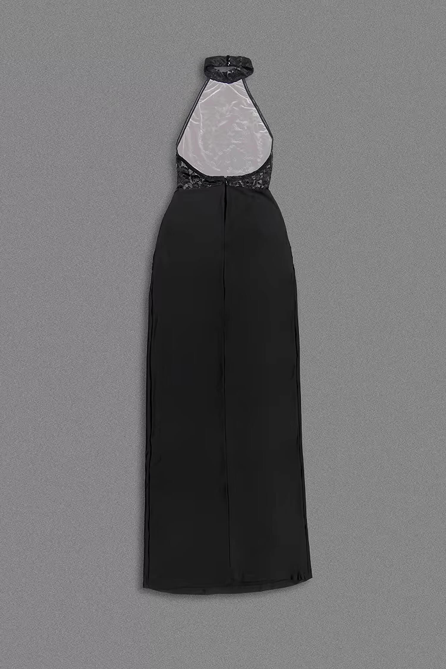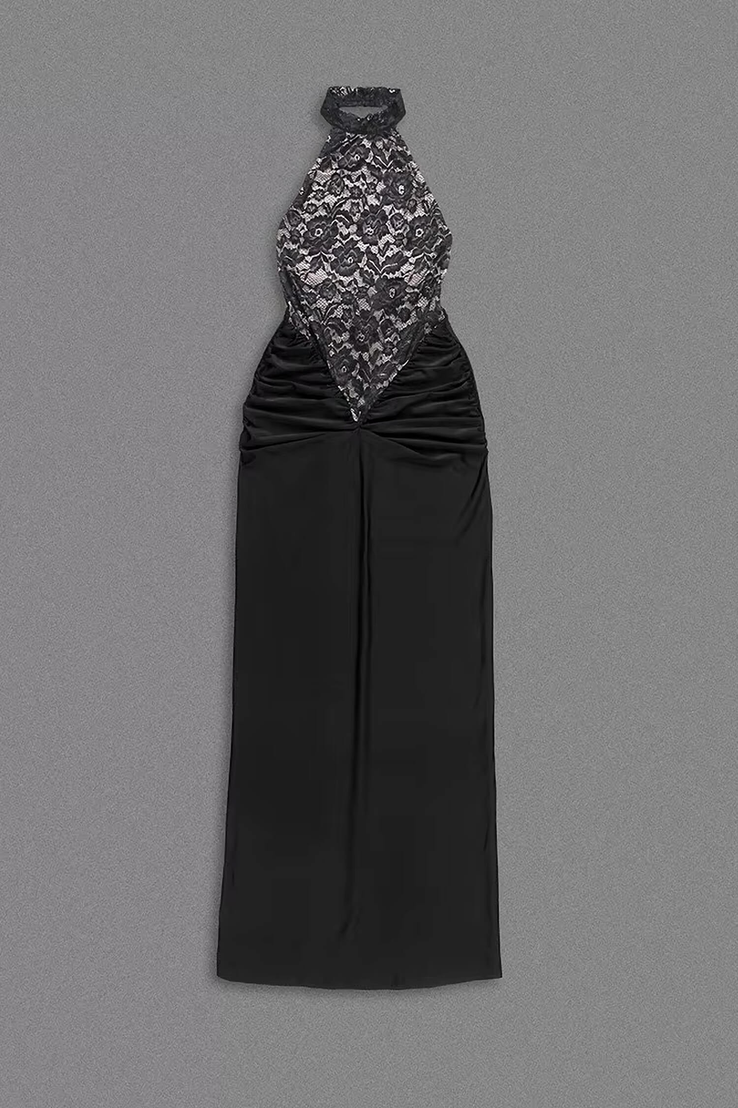 The Black Lace Halter Maxi Dress is a stunning choice for any elegant woman. This black maxi dress features a halter neckline with button closure, a sleeveless cut, and delicate floral lace accents. The front boasts a v-cut design adorned with ruched fabric, enhancing its chic appeal. The backless design, stretchy lined fabric, and bodycon silhouette ensure comfort and style. Perfect for weddings, cocktail events, or formal occasions, it’s a year-round wardrobe essential for fall, winter, spring, and summer.