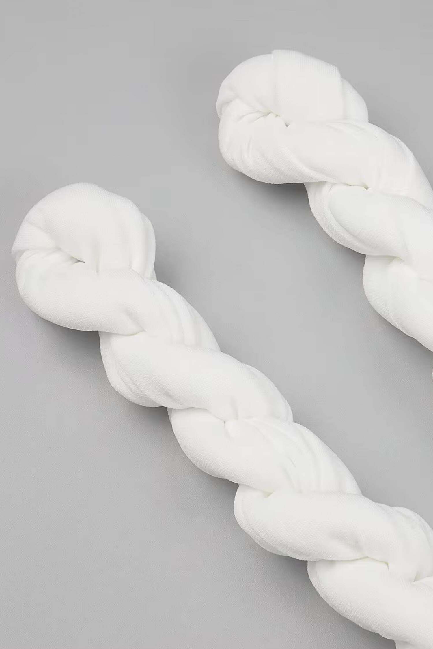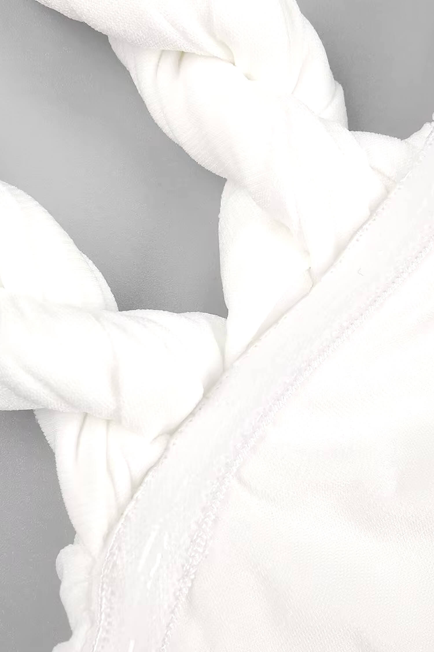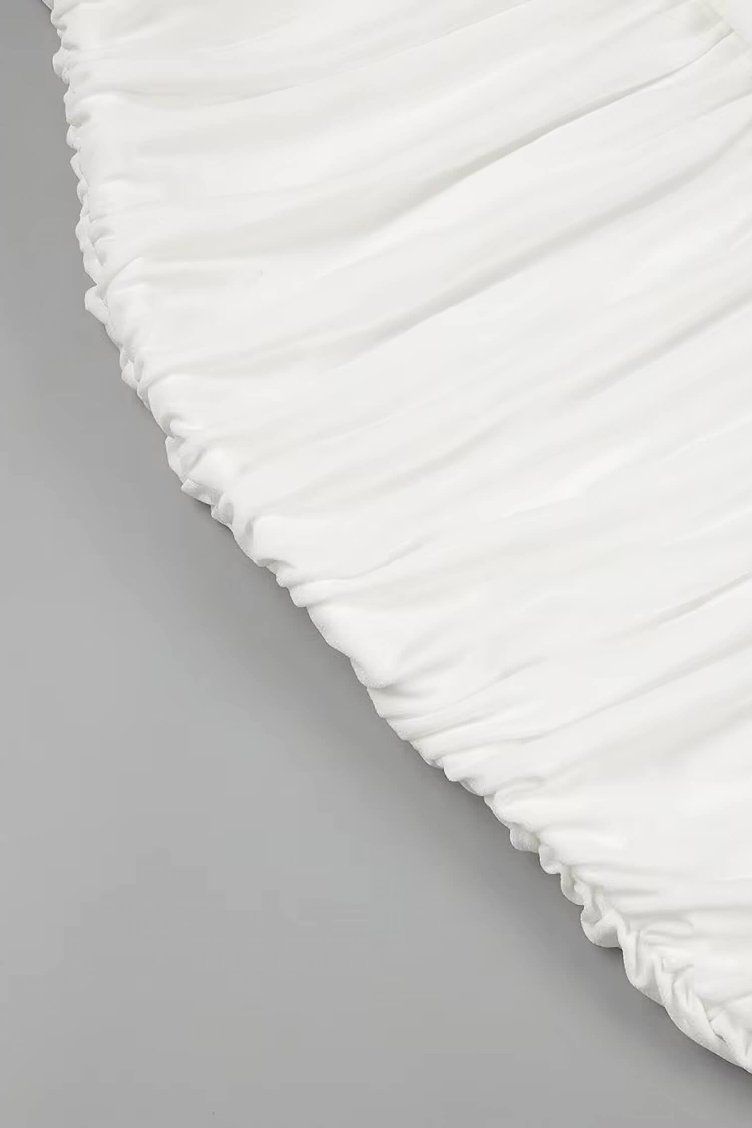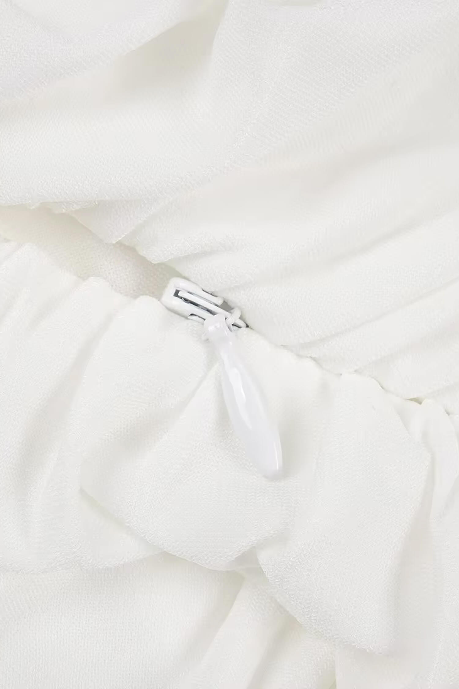 This White Off-The-Shoulder Ruched Maxi Dress is perfect for women looking for a chic yet comfortable look. The rope straps and off-the-shoulder style add a unique touch, making it ideal for weddings, evening, or date night. This maxi dress features a bodycon fit with bardot sleeves, ruched and draped details, and a backless design. Made from textured jersey, it's fully lined and has a stretchy fit with a secure zipper. This dress is suitable for various events like cocktail parties, club nights, and red carpet events, in all seasons—spring, summer, fall, or winter.