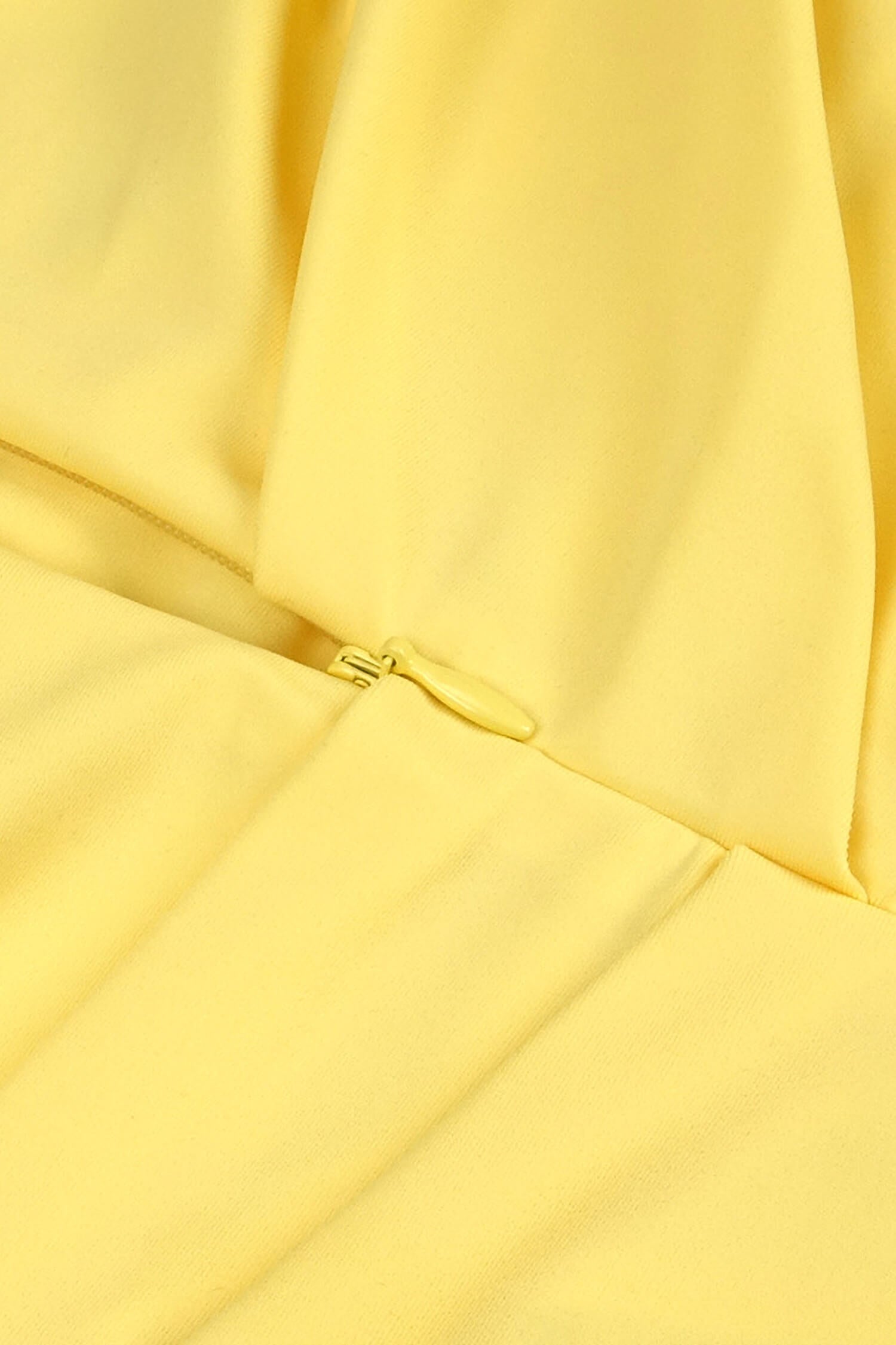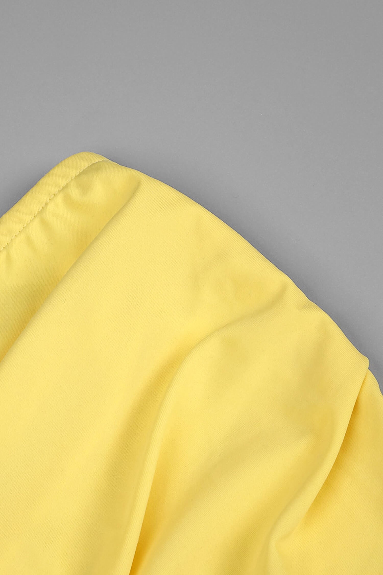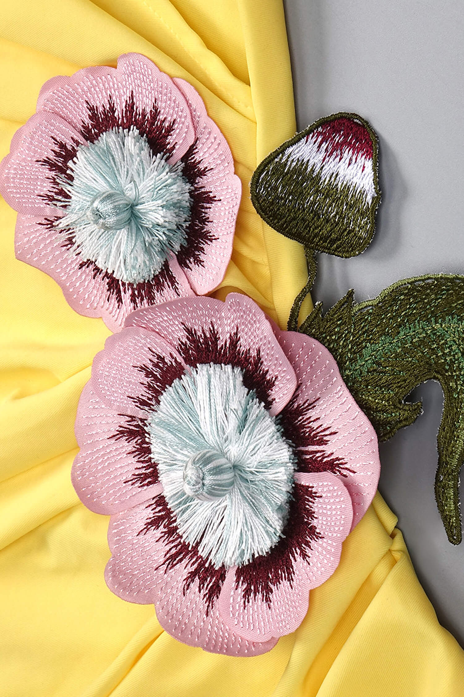 This Yellow Ruched Strapless Maxi Dress with Slit is a showstopper for women who love elegance and style. The strapless and sleeveless design creates a sleek and flattering neckline, while the ruched detailing enhances its sophisticated look. Crafted with a wrap-style silhouette and a dramatic slit, this dress combines femininity with allure. The addition of 3D floral appliques gives it a unique and charming detail, perfect for special events. Designed with stretchy fabric for comfort, this bodycon maxi dress is ideal for cocktail parties, prom nights, or walking the red carpet. With a secure zipper closure, it’s versatile for all seasons—summer, spring, fall, and winter.